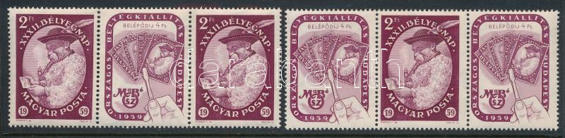 1959 Bélyegnap 2 klf hármascsík fordított állású szelvényes párokkal