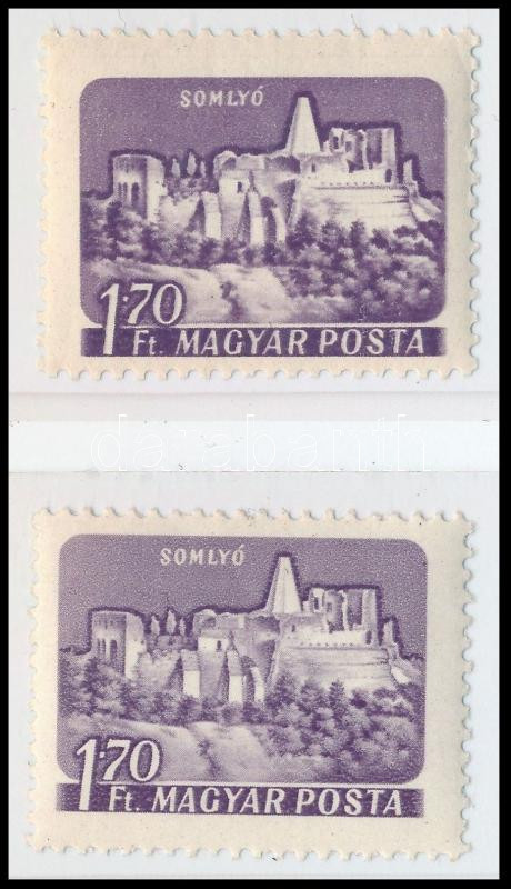 1960 Várak I. 1,70Ft 2 db "Somlyó" feliratú bélyeg XIII. A és XIII. B vízjellel
