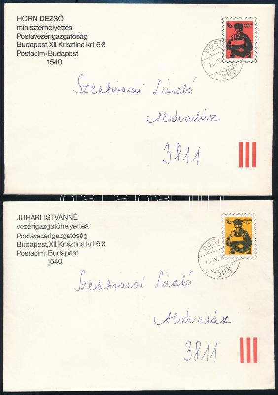 1976 2 db Postavezérigazgatósági boríték futott postaszolgálati díjjegyes levélként / 2 postal service covers