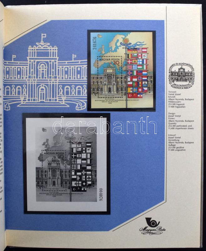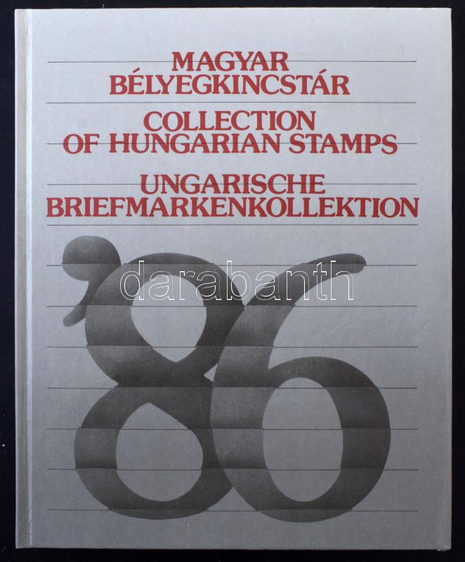 1986 Magyar Bélyegkincstár, benne feketenyomat blokk fekete sorszámmal (min 10.000)