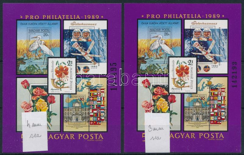 1989 Pro Philatelia blokk kis és nagy sorszámmal