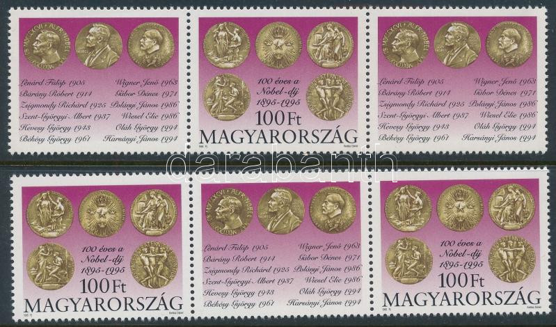 1995 100 éves a Nobel-díj 2 klf hármascsík, mindkettőben fordított szelvényes pár