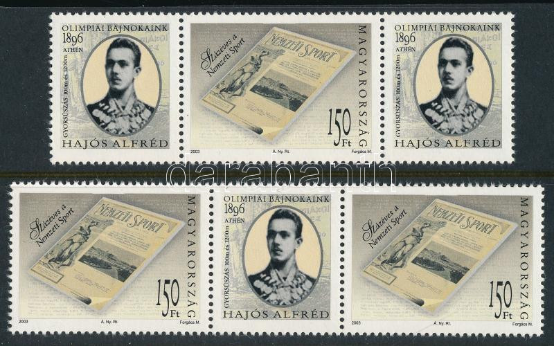 2003 100 éves a Nemzeti Sport 2 klf hármascsík, mindkettőben fordított szelvényes pár