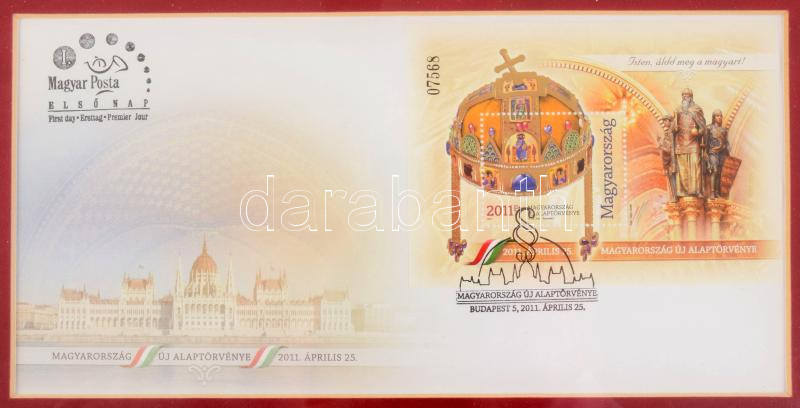 2011 Magyarország új alaptörvénye blokk FDC-n, üvegezett keretben