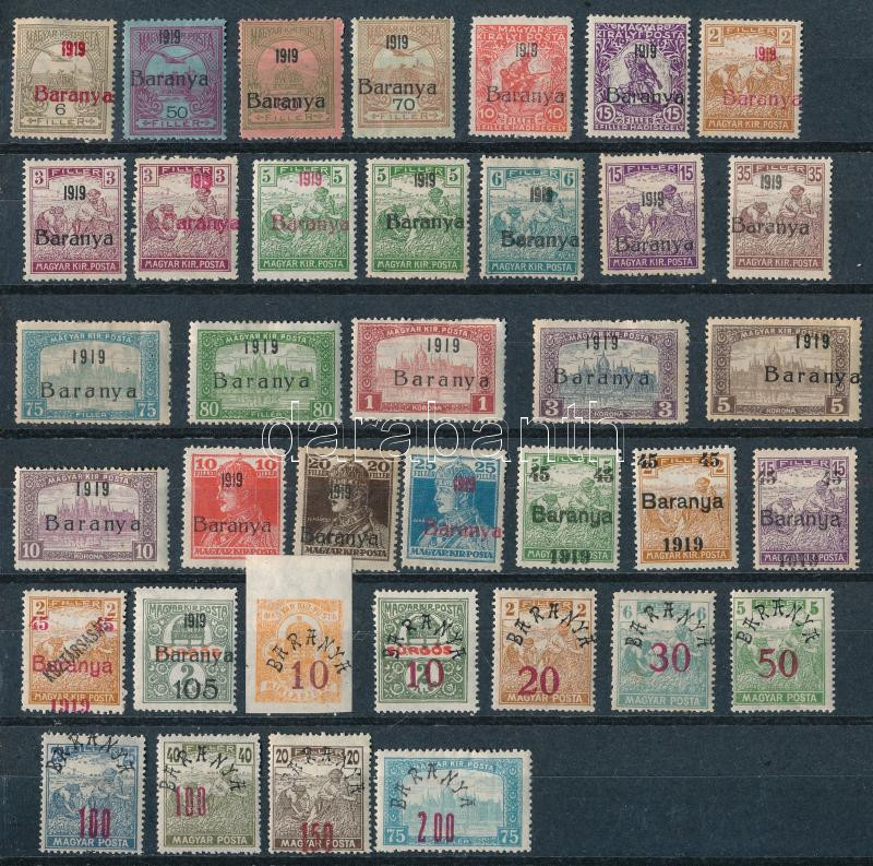 Baranya I-II. 1919 37 db bélyeg, Bodor vizsgálójellel