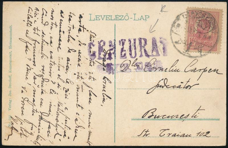 ~1920 Képeslap román bélyeggel, román cenzúrával