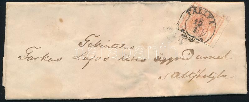 1858 3kr levélen / on cover "TÁLLYA" - Sátoraljaújhely