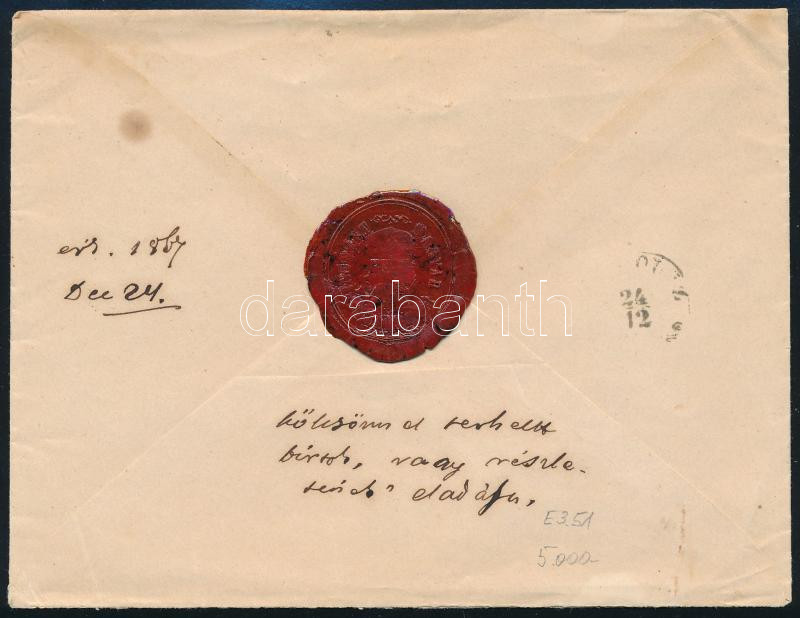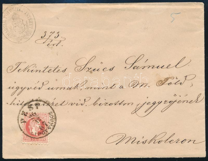 1867.12.26. Távolsági levél 5kr bérmentesítéssel, "PEST / LIPÓTVÁROS" - Miskolc