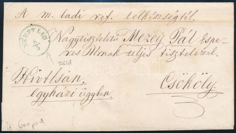 1871 Hivatalos levél / Official cover, kék / blue "NÉMET LAD" - Csököly (Gudlin 600 p)