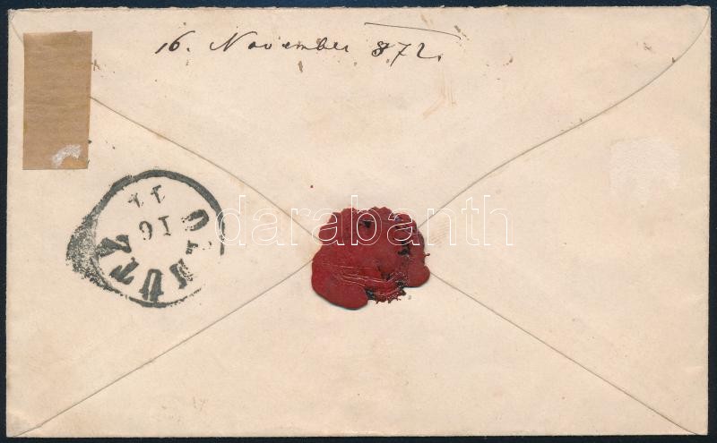 1872 Réznyomat 15kr ajánlott borítékon / on registered cover "PEST-AJÁNLOTT" - Olmütz