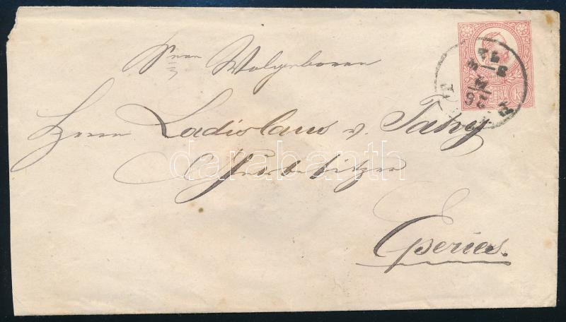 1872.04.26. Könyvnyomású 5kr díjjegyes levél "PEST" - "EPERIES / SÁROS. M."