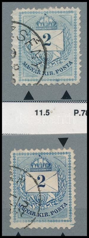 1881 2 db 2kr látványos, ritka vésésjavításokkal (ex Orbán, Sebestyén aranyérmes kiállítási anyagból)