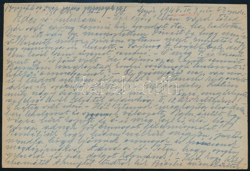 1946 (11. díjszabás) Távolsági levelezőlap 6 db bélyeggel bérmentesítve Győrből Budapestre