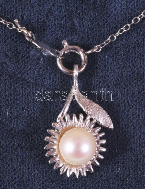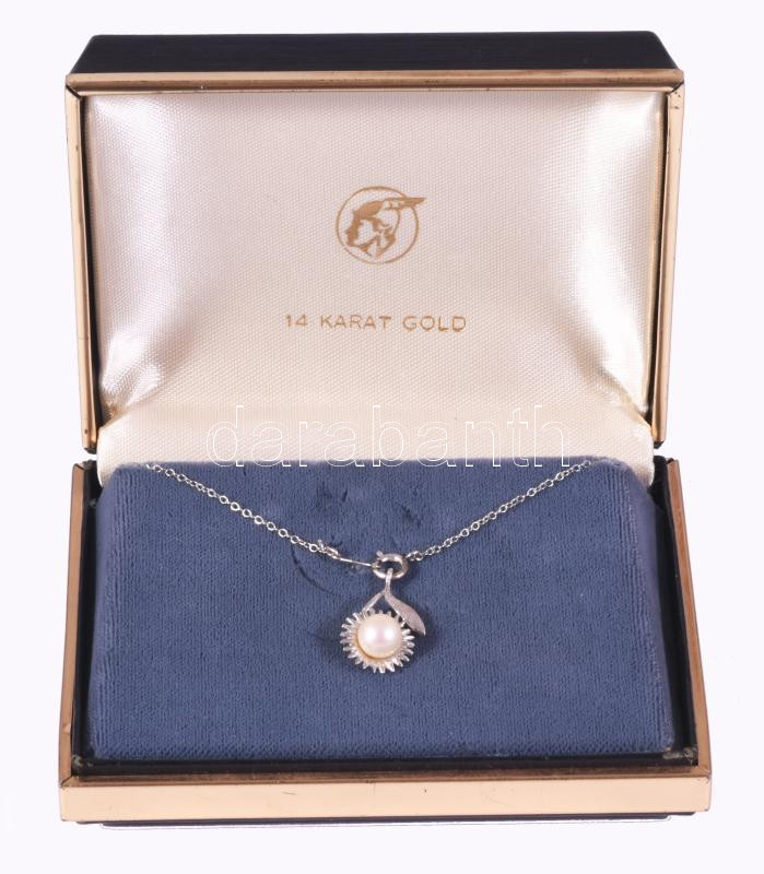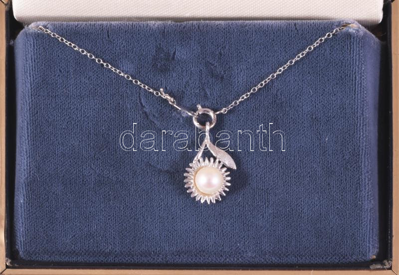 Fehérarany (Au) nyaklánc gyöngy ékítéses medállal, jelzett a láncon, bruttó 1,68g, díszdobozban.