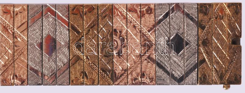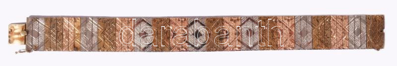 Rozéarany, fehérarany és sárga arany (Au) karlánc. Jelzett, hivataljel, 1966-1998 közötti fémjel, mesterjegy, 14 karátos arany, h: 19 cm, nettó 20g
