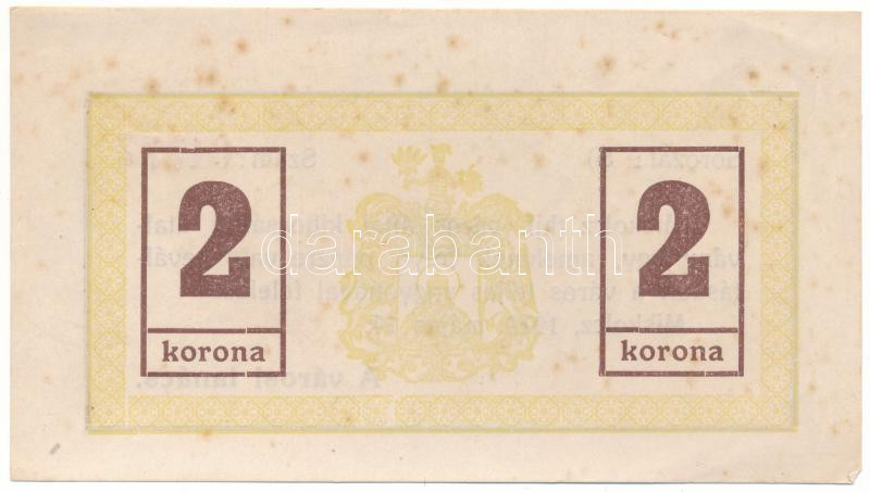 Hungary / Miskolc 14.05.1919. 2 Korona "Miskolcz város" with "S 04777" serial number C:VF unfolded, but corner folds, spotted