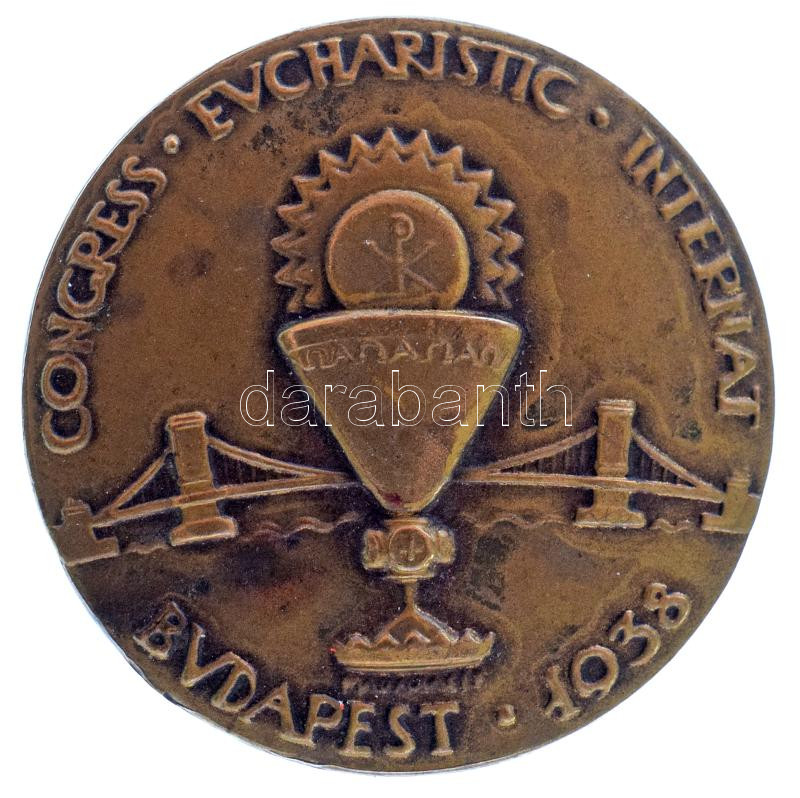 1938. "XXXIV. Nemzetközi Eucharisztikus Kongresszus Budapest" bronz kitűző hátlapon "Ludvig Bp." gyártói jelzéssel. Szign.: Madarassy Walter (1909-1994) (30mm) T:AU