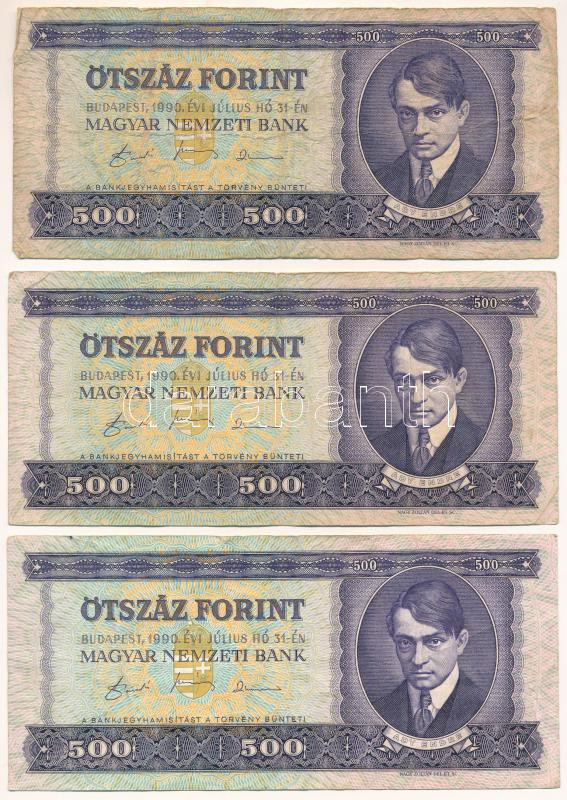 1990. 500Ft (3x) különböző sorozatszámúak T:F-VG