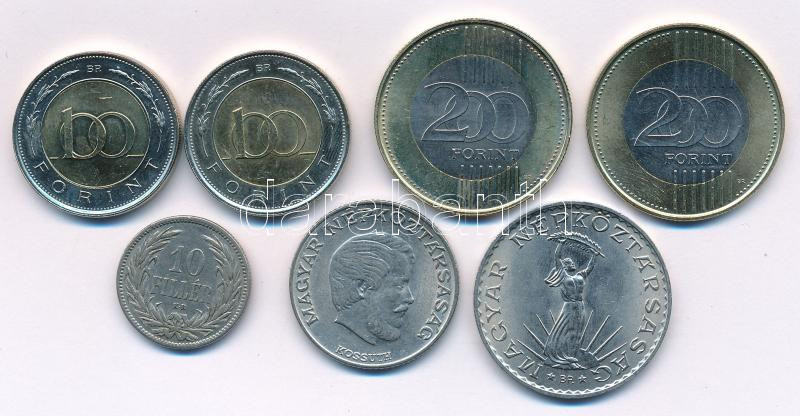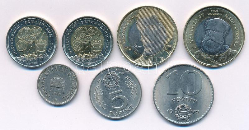 1894. 10f + 1971. 5Ft "Kossuth" + 1972. 10Ft + 2022. 100Ft "Pénzmúzeum" (2x) + 2023. 200Ft "Petőfi" + 2024. 200Ft "Batthyány" T:AU-XF