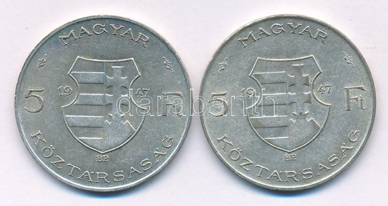 1947. 5Ft Ag "Kossuth" (2x) T:VF,F patina