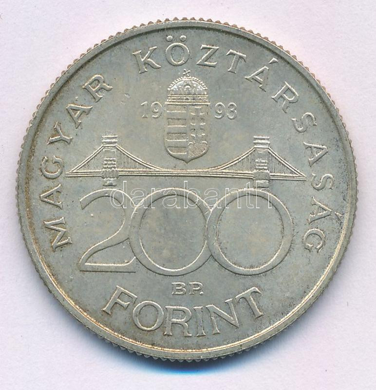 1993. 200Ft Ag "MNB" T:XF patina