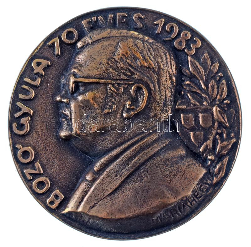 Ifj. Máriahegyi János (1925-2001) 1983. "Bozó Gyula 70 éves" bronz emlékplakett (78mm) T:XF