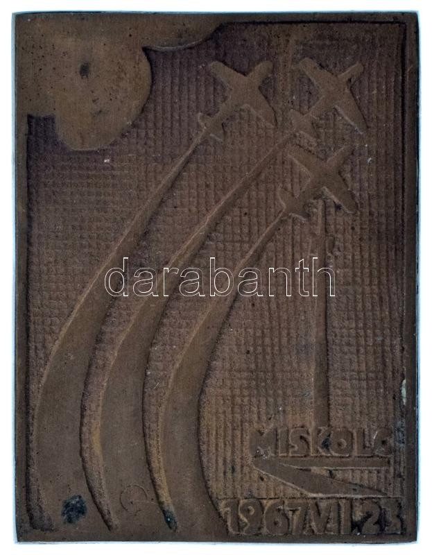 1967. "Miskolc 1967. VII. 23" egyoldalas, öntött bronz plakett (87x69mm) T:XF