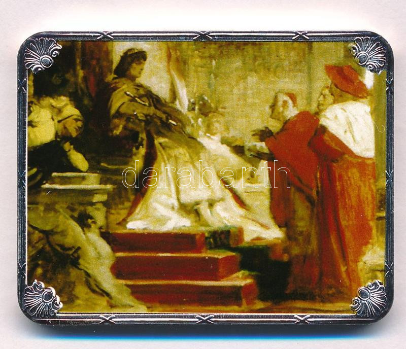 DN "Magyar Festészet Remekei - Benczúr Gyula: Mátyás fogadja a pápa követeit, 1915" ezüstözött Cu emlékérem multicolor festéssel, kapszulában, tanúsítvánnyal (46x36mm) T:PP