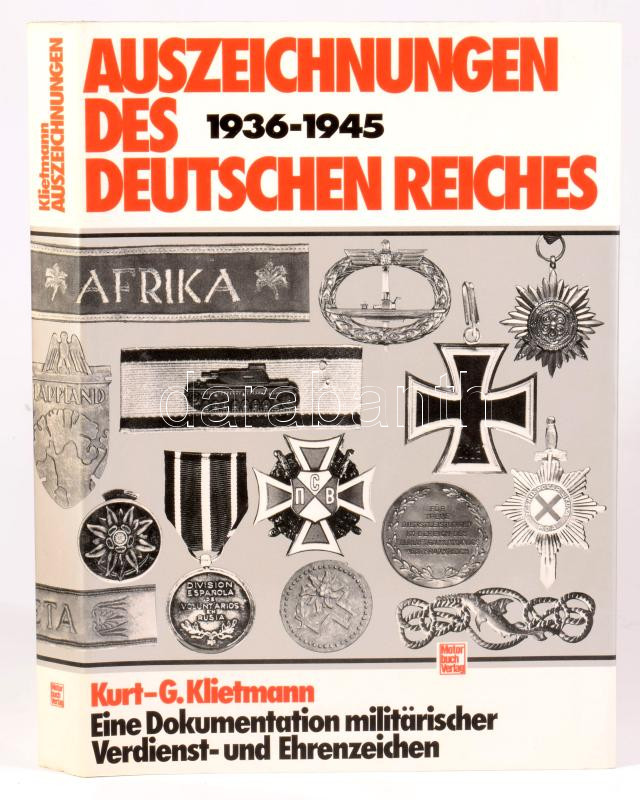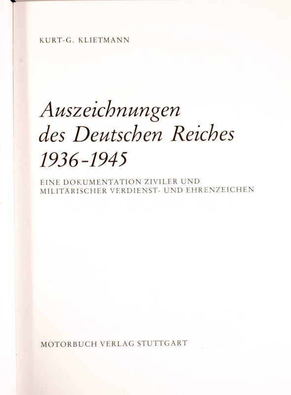 Klietmann, Kurt-G.: Auszeichnungen des Deutschen Reiches 1936-1945. Suttgart,1982., Morobuch. Német nyelven. Gazdag képanyaggal illusztrált. Kiadói egészvászon-kötés, kiadói papÃr védÅ‘borÃtóban.