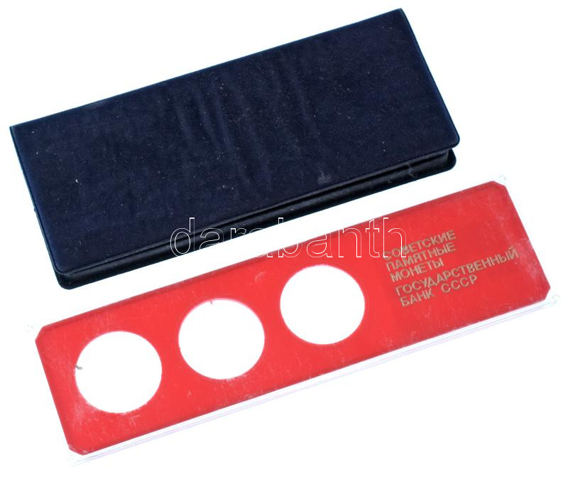 1970 k. piros "Szovjet Állami Bank" plasztik tok, használt állapotban + bársony "Szovjetunió Külgazdasági Bankja" tok, használt állapotban