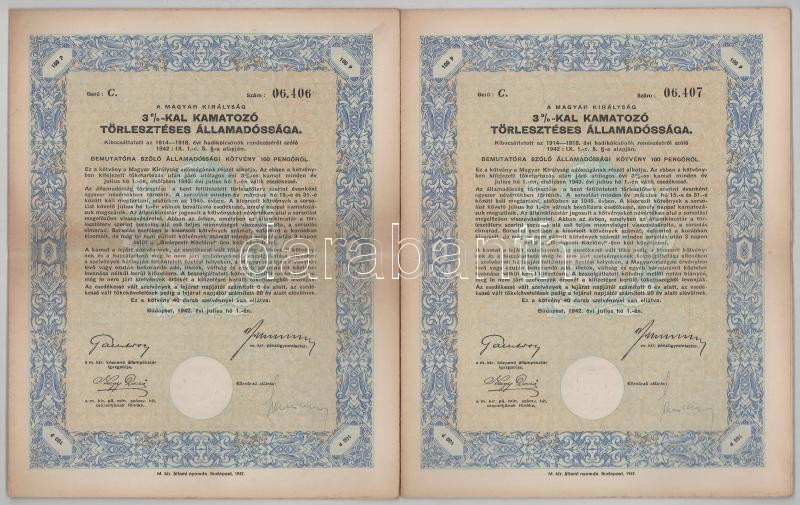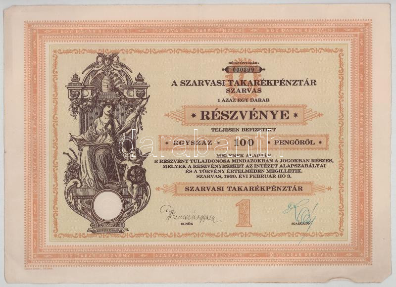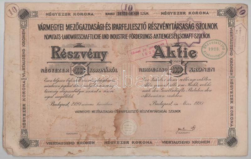 Vegyes, 8db-os részvény, kötvény tétel, benne: A Magyar Jelzálog-Hitelbank részkötvénye + Szarvasi Takarékpénztár részvénye + Sorsjegykölcsön (2x) + Vármegyei Mezőgazdasági- és Iparfejlesztő Rt. Szolnok részvénye + Államadóssági kötvény (3x sorszámkövetők) T:F-VG egyiken nagyobb beszakadás