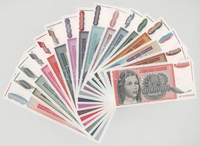 Jugoszlávia 1992-1993. 1000D-10.000.000.000D (16xklf) közte 1992. 5000D "ZA" betűjelű pótkiadás T:UNC