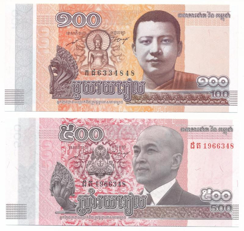 Cambodia 2014. 100 Riels + 500 Riels C:UNC