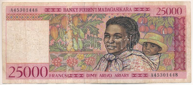 Madagascar ND (1998-2003) 25.000 Francs "A4501448" C:F pinholes