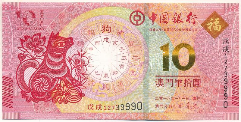 Macau 2011. 10 Patacas "Year of the dog" C:UNC