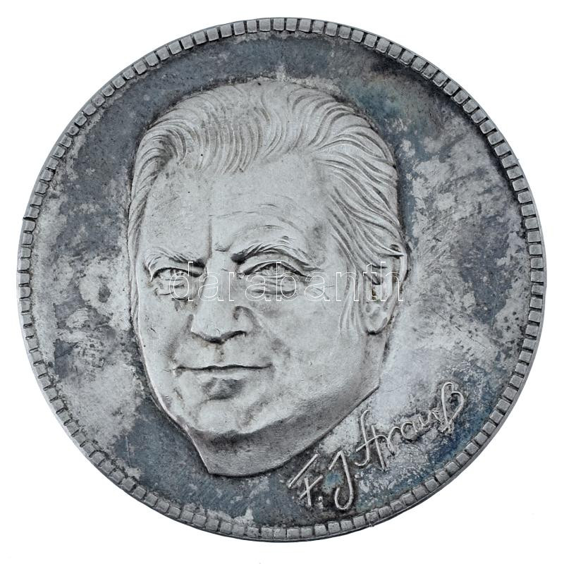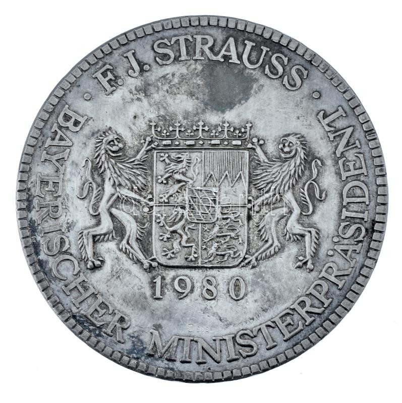 Német Szövetségi Köztársaság 1980. "Franz Joseph Strauss bajor miniszterelnök" jelzett Ag kétoldalas emlékérem sérült dísztokban (24,63g/0.999/40mm) T:AU (redetileg:PP) patina