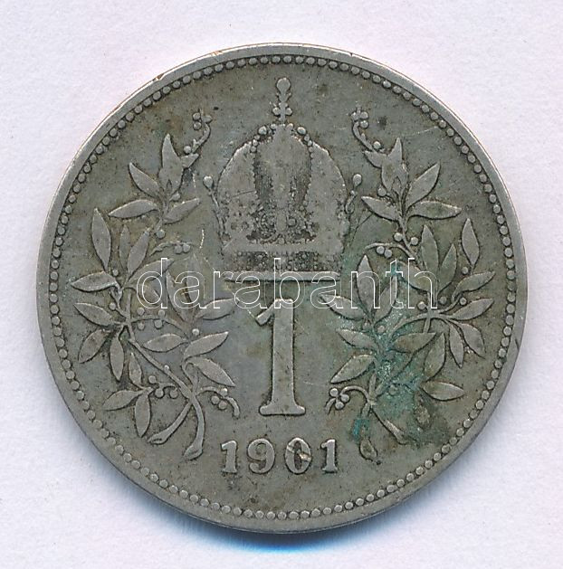 Austria 1901. 1 Corona Ag "Franz Joseph" C:F patina