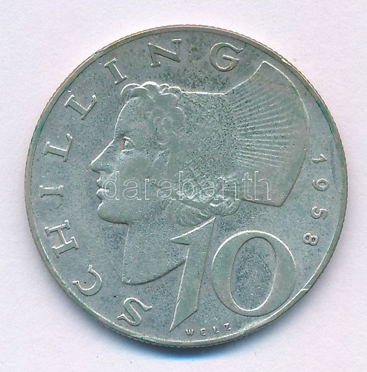 Austria 1958. 10 Schilling Ag C:VF, patina
