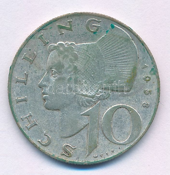 Austria 1958. 10 Schilling Ag C:VF, patina