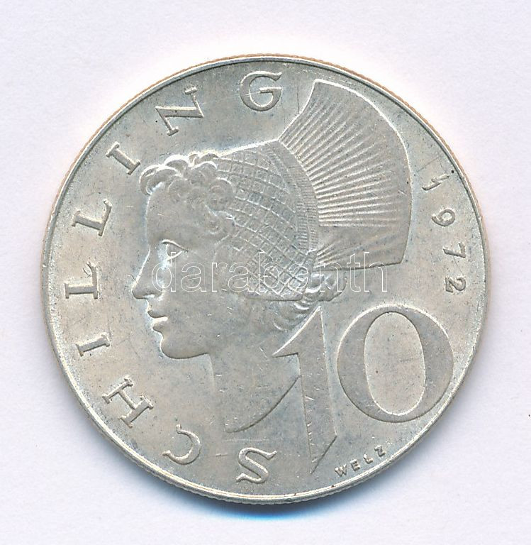 Austria 1972. 10 Schilling Ag in capsule C:AU,XF