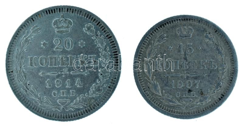 Orosz Birodalom 1907. 15k Ag + 1914. 20k Ag T:XF