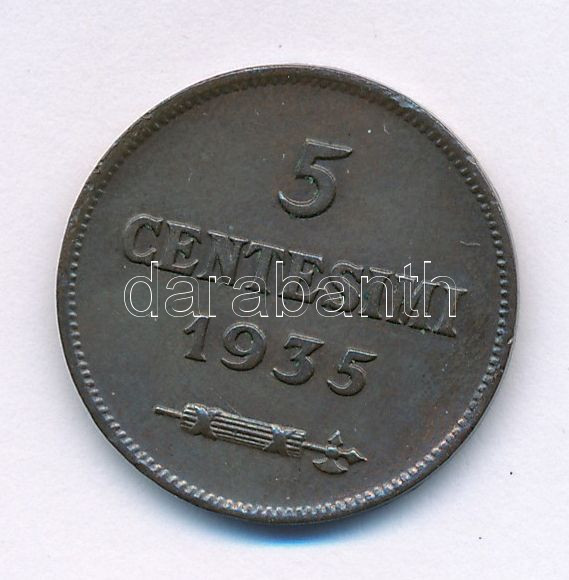 San Marino 1935R 5 Centesimi bronze C:XF small edge error
