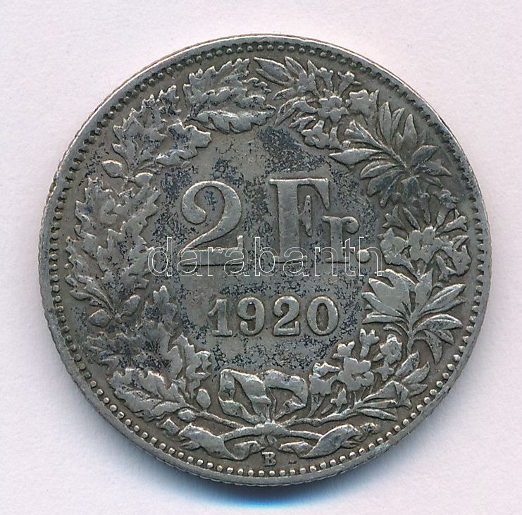 Switzerland 1920. 2 Francs Ag C:XF,VF patina