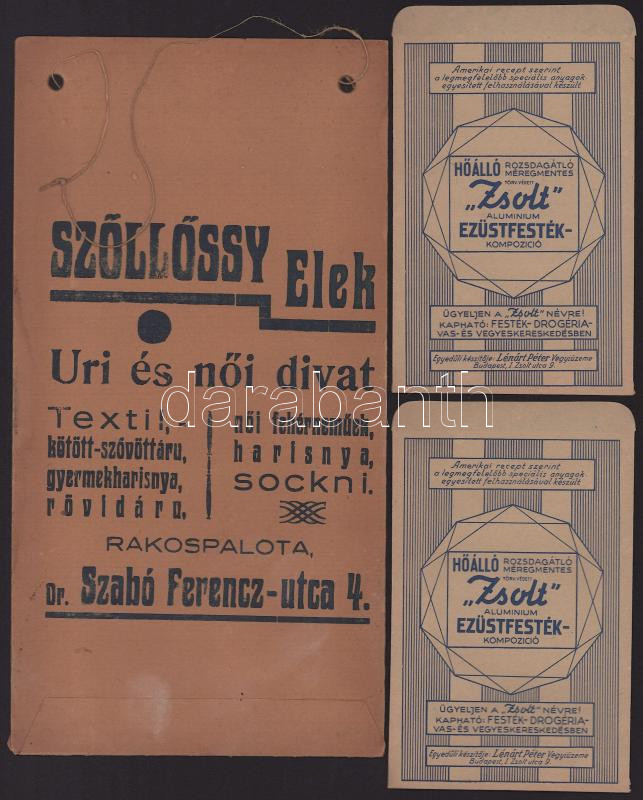 3 db reklámzacskó ("Zsolt" ezüstfesték, Szőllősy Elek úri divat)