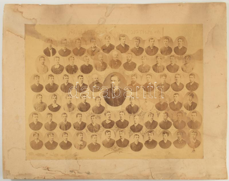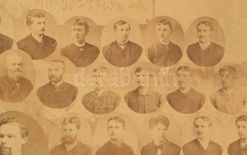 1891 Igló, Zipser Neudorf, Spisská Nová Ves; Az iglói főgimnázium VIII. oszt. végzett tanulói, tabló, rajta az igazgatóval, tanárokkal, jól olvasható nevekkel. Studentika 44x34 cm / grammar school tableu with students, teachers and principal, readable names. Studentica. 44x34 cm