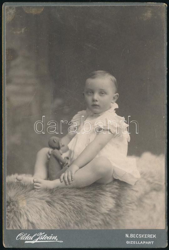1903 Nagybecskerek, Oldal István fotográfus fiáról készült portré, keményhátú fotó a fotós által feliratozva, 16,5×10,5 cm