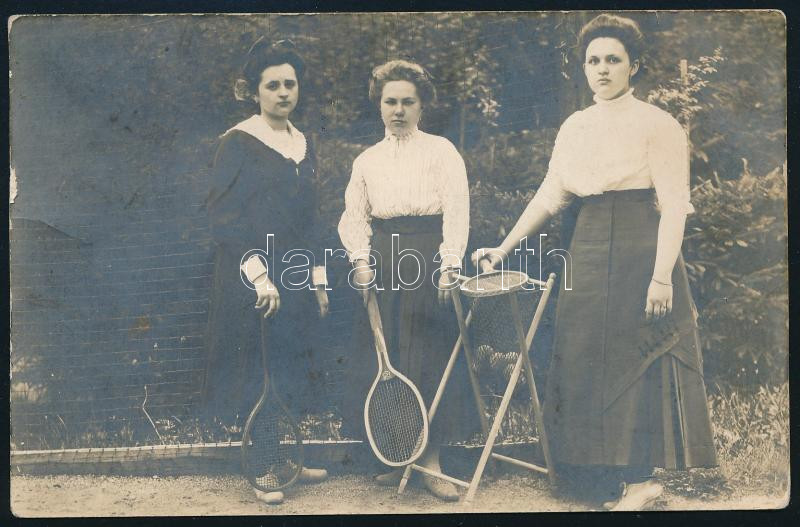 1911 Parádfürdő, teniszező hölgyek, fotólap, Matlárházára küldve, 9x14 cm