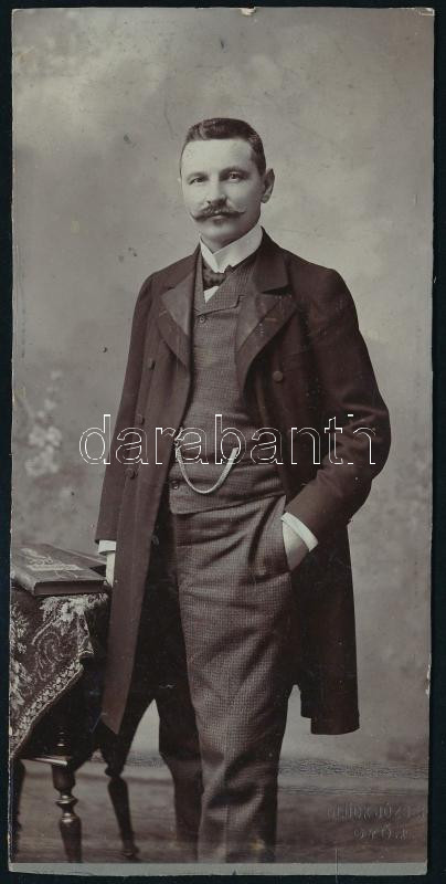 1913 Férfiportré, keményhátú fotó Glück József győri műterméből, vágott karton, 18×9 cm