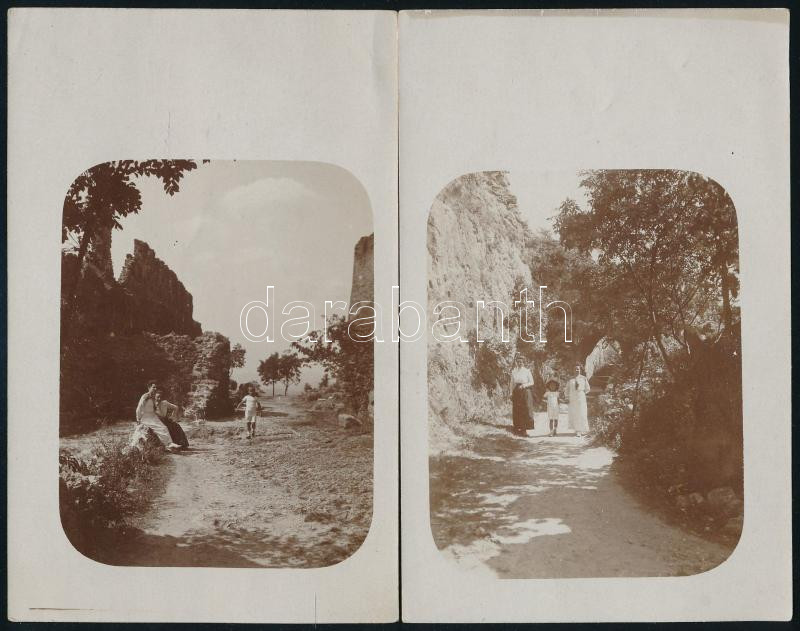 1917 Egy visegrádi kirándulás képei, 2 db hátoldalon feliratozott fotólap, 14×9 cm
