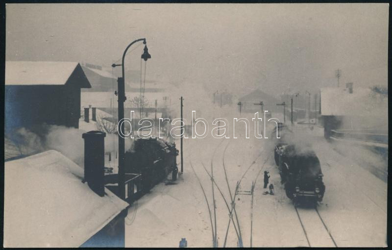 1934 Orphanidesz János (1876-1939): Mozdony hófúvásban, fotó hátoldalon feliratozva, 9×14 cm